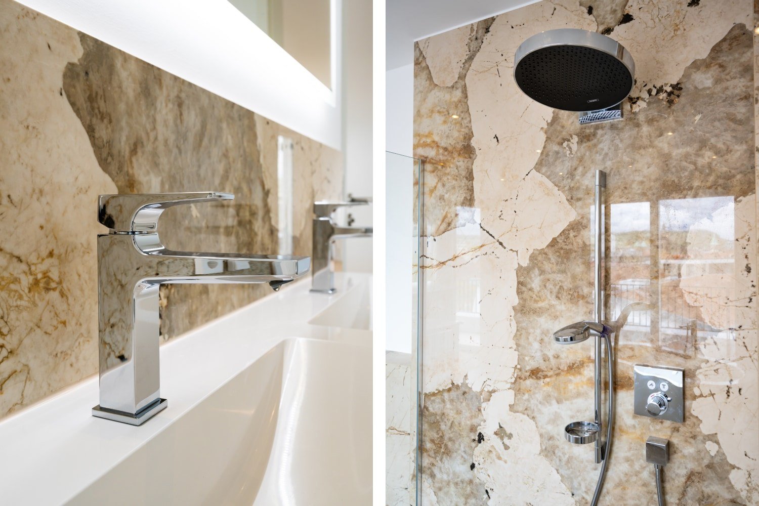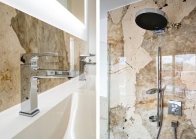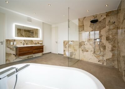 Bäder und Komplettbäder mit spektakulären Stein- und Keramikflächen und edlem Glas